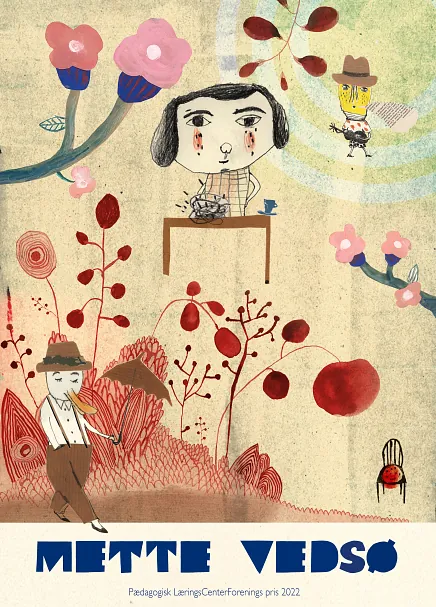 Plakat for Pædagogisk LæringsCenter Forenings pris 2022 til Mette Vedsø for hele hendes forfatterskab